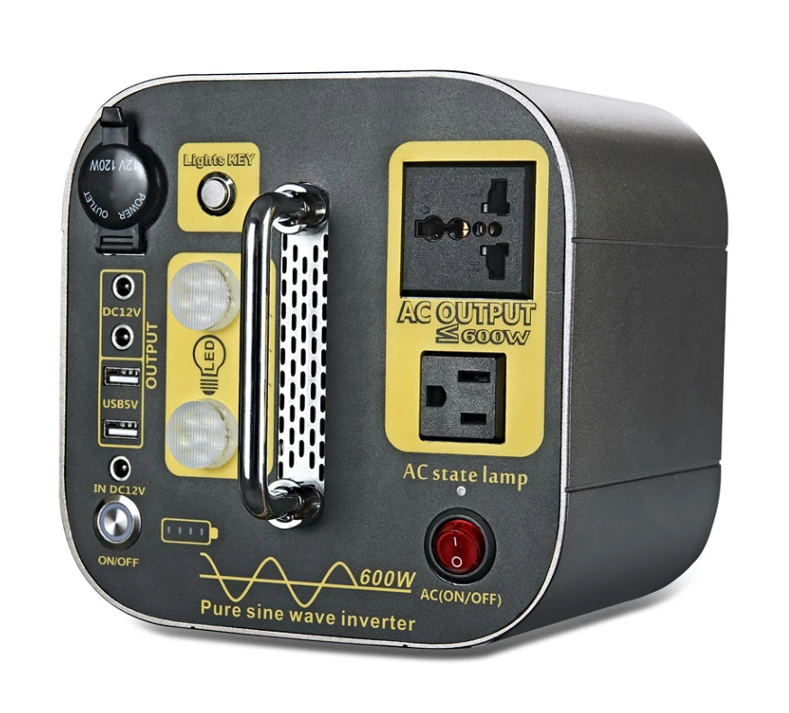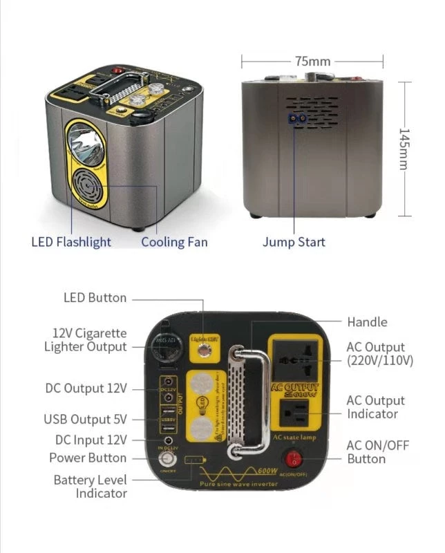 - AC Output: 110V/60Hz, rated power 600W, pure sine wave