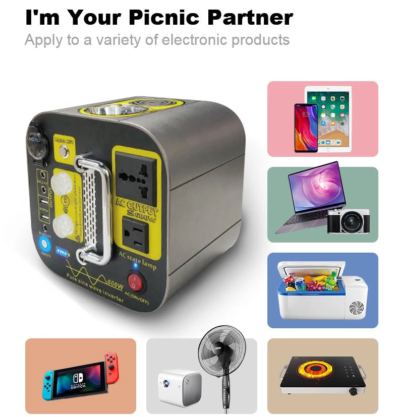 Different with small portable charger , Our Power station can charge many kinds of 3C products.such as smartphones,tablets,laptops,cameras, mini fridge, camping lamps…etc.