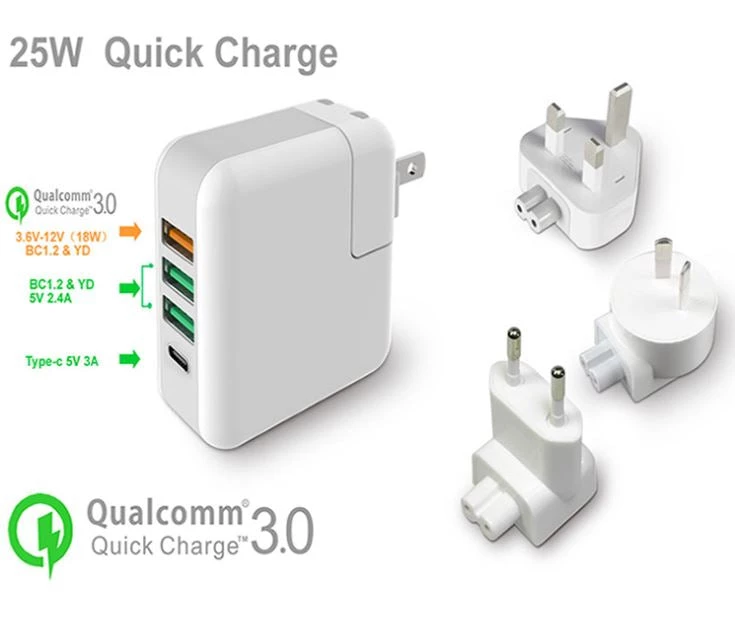 - 1 x 4 Port USB Fast Charger with US Plug